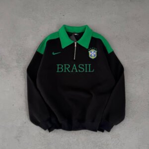 This premium Brazil half-zip sweatshirt features a relaxed oversized fit, giving you a stylish and comfortable look inspired by classic