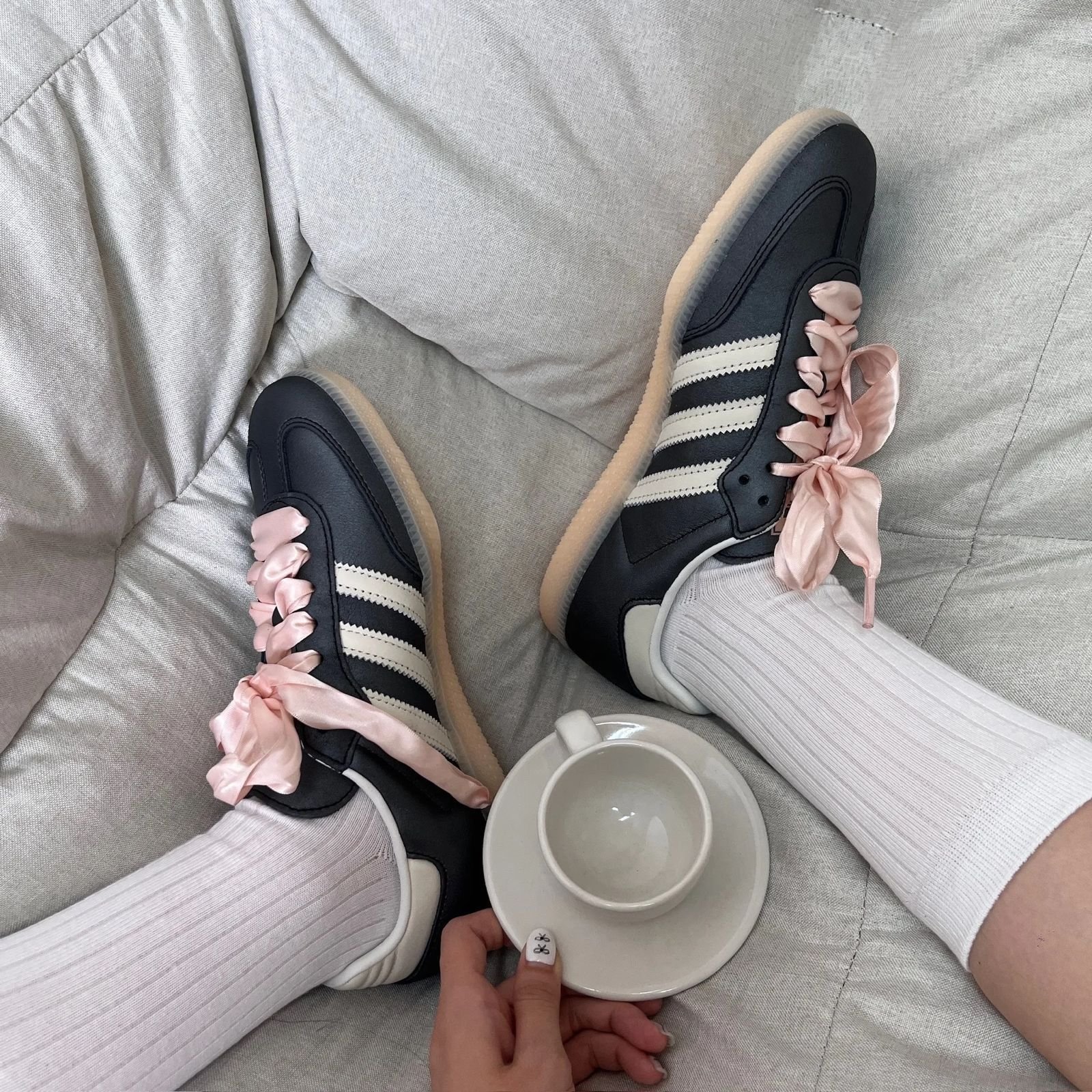 Adidas samba black pink Ribbon lace