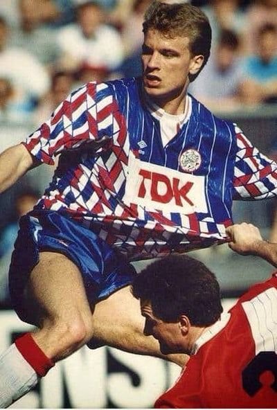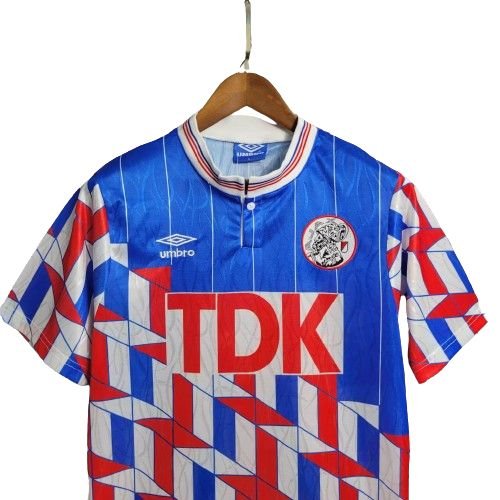 Ajx Away Retro Jersey 1989/90 brings back one of the most iconic designs in football history. Featuring the legendary geometric pattern and bold colors sponsored by TDK, this jersey represents a golden era of Ajax dominance in European football.