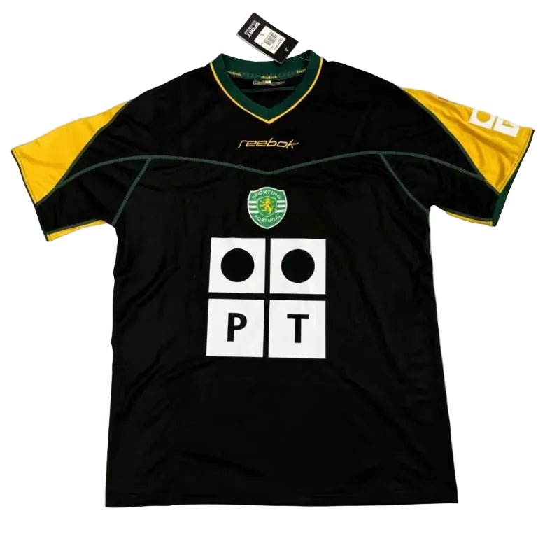 Sporting Lisbon 2003/04 Third Away Jersey brings back a bold retro look from one of the club’s iconic seasons. The black base combined with striking yellow accents delivers a standout design that reflects Sporting CP’s classic away identity.